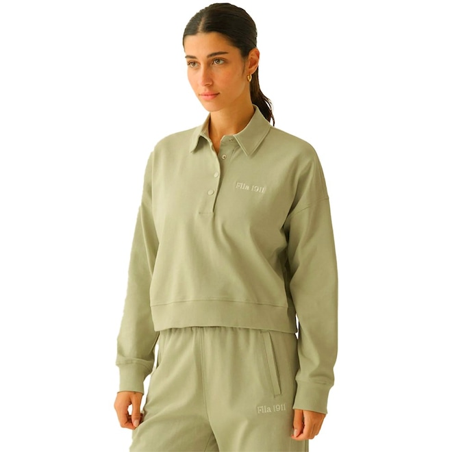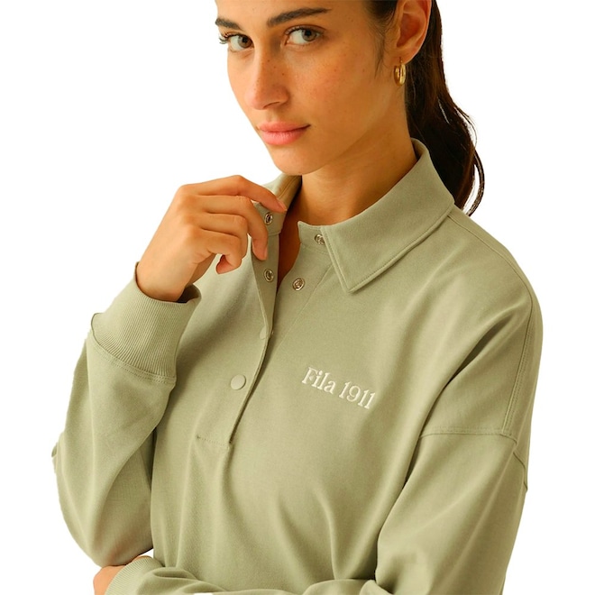 O Blusão Fila Comfort 1911 Feminino, feito em malha de algodão ecológica, combina estilo clássico e moderno com modelagem oversized. Possui gola polo entretelada, meia vista com abotoamento e botões de pressão, além de punhos e barra em ribana. O bordado “FILA 1911” no peito destaca o design minimalista e sofisticado, ideal para um visual jovem e sustentável. Garanta já o seu! Gola polo;100% algodão;Botões na camisa.