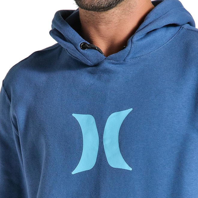Moletom Hurley fechado 250g, estampa ICON frontal, capuz com cordão e bolso canguru com etiqueta.