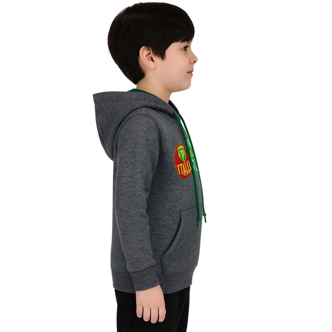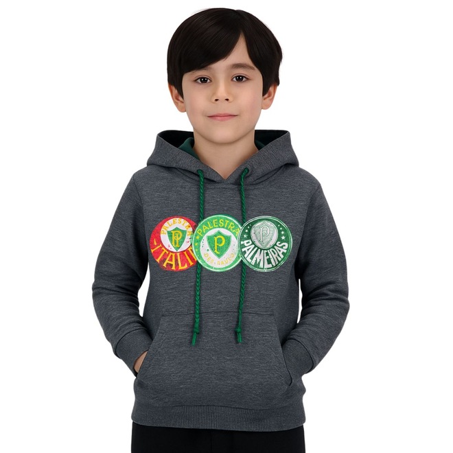 Confeccionada com tecido macio e resistente, sua composição de 84% algodão e 16% poliéster proporciona toque agradável e excelente durabilidade. O modelo possui capuz forrado para maior proteção térmica, bolso canguru e estampa frontal Evolução Palmeiras, trazendo autenticidade ao look dos pequenos torcedores.