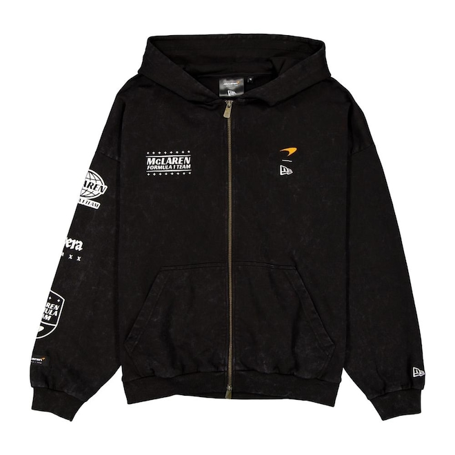 Envolva-se no estilo e na autenticidade da Fórmula 1 com o moletom preto oversized com zíper completo da McLaren Racing, assinado pela New Era. Produzido em French Terry de efeito lavado 100% algodão, o modelo une conforto premium e um design marcante. Um item essencial para fãs de automobilismo que buscam unir autenticidade, conforto e estilo urbano em uma única peça. 100% Algodão