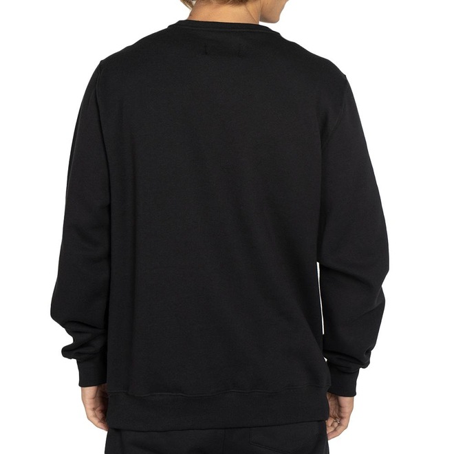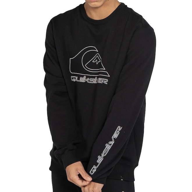 Moletom QuikSilver careca 270g, estampa na frente e na manga esquerda e etiqueta aplicada na barra do lado esquerdo de quem veste.