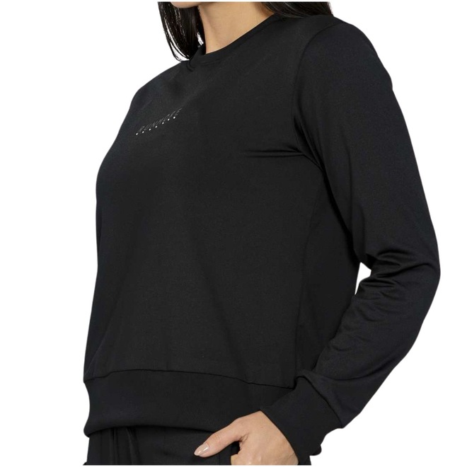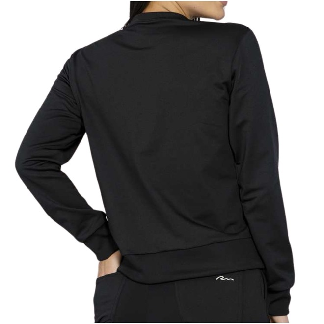 Os acabamentos em ribana no decote, punhos e barra acrescentam um toque de estilo diferenciado.Na parte frontal, a arte Run More com aplicação de cristais proporciona um detalhe sofisticado e elegante.Ideal para enfrentar os dias frios com charme e conforto.