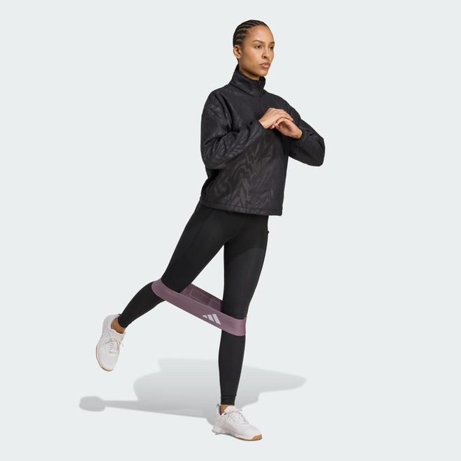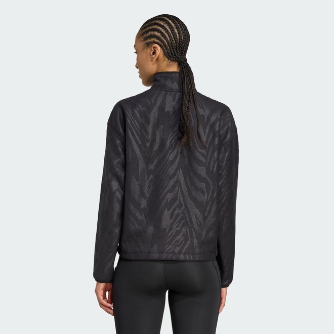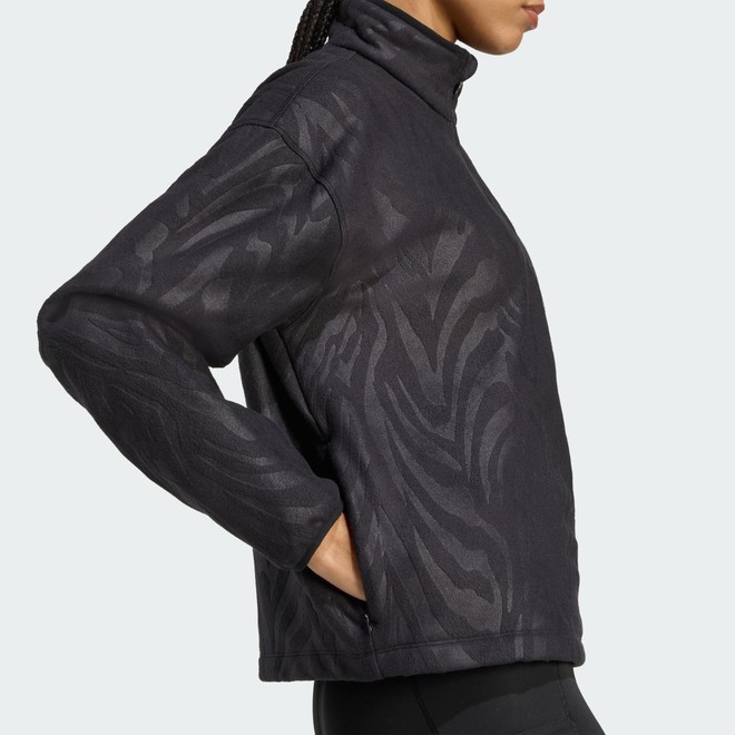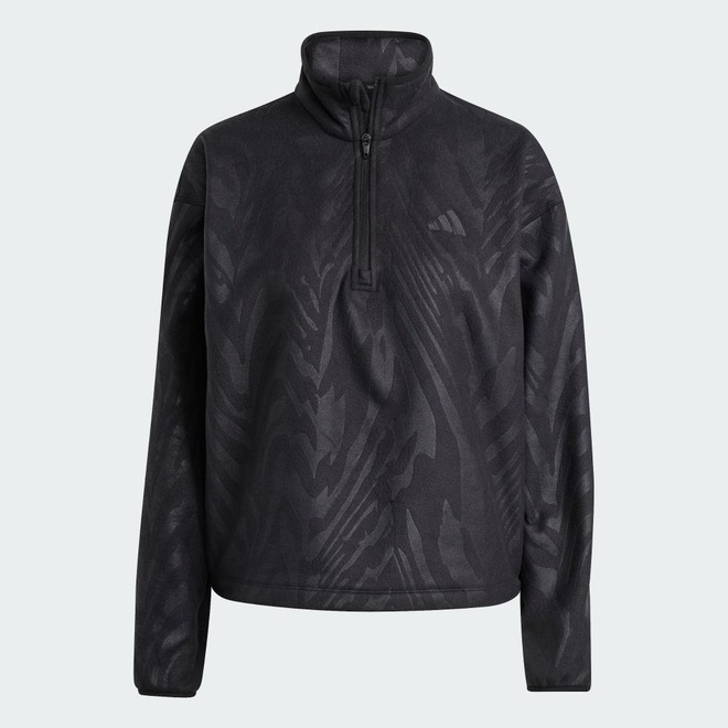 Use este pulôver com zíper 3/4 para treinos ou encontros casuais. Macio e aconchegante, ele é feito de polar fleece com um padrão tonal e corte cropped. adidas AEROREADY absorve a umidade para manter você seco.