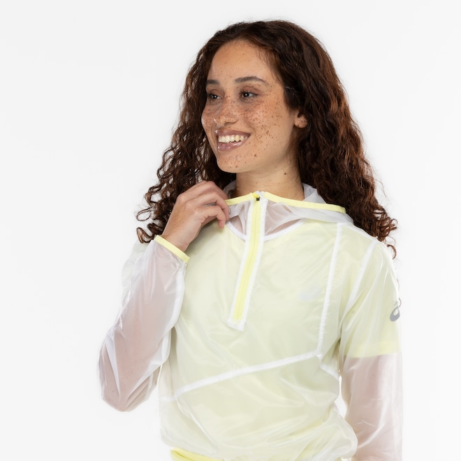 Esteja preparada para qualquer aventura com o Blusão Feminino ASICS com Capuz Leve Assimétrica!