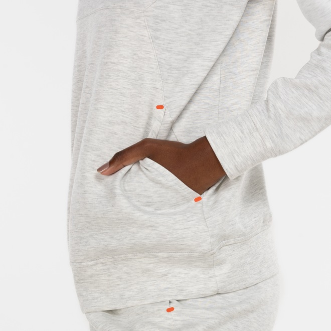 Tem dois bolsos laterais para guardar seus objetos perto das mãos, já sua gola é careca com tira interna e seus punhos são elásticos.