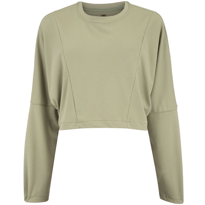 Feito em malha de algodão e poliéster, o modelo tem caimento oversized, mangas longas com ribana e recortes modernos que valorizam a silhueta.