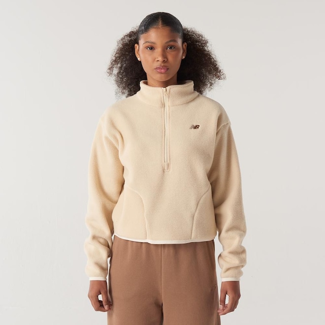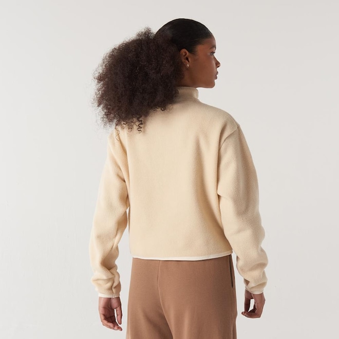 O Blusão Feminino Meio Zíper Essentials Fleece é aconchegante para os dias de temperatura baixa, feita para oferecer conforto com tecido em fleece macio. Modelagem comfort, com abertura em meio zíper tratorado e gola alta. Acabamentos em elástico na barra e nos punhos, para bloqueio do frio e logo NB bordado