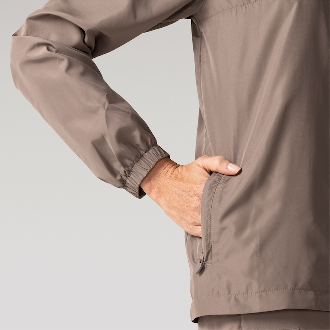 O capuz repelente à água mantém você seco nos dias chuvosos, enquanto o design moderno proporciona um visual elegante.