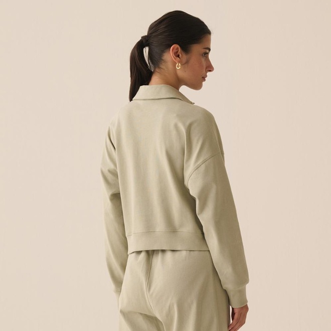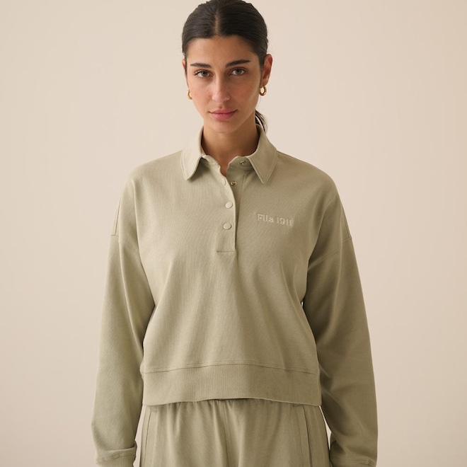 O Blusão Feminino FILA Comfort 1911, feito em malha de algodão ecológica, combina estilo clássico e moderno com modelagem oversized. Possui gola polo entretelada, meia vista com abotoamento e botões de pressão, além de punhos e barra em ribana. O bordado FILA 1911 no peito destaca o design minimalista e sofisticado, ideal para um visual jovem e sustentável.ref: M17LRS