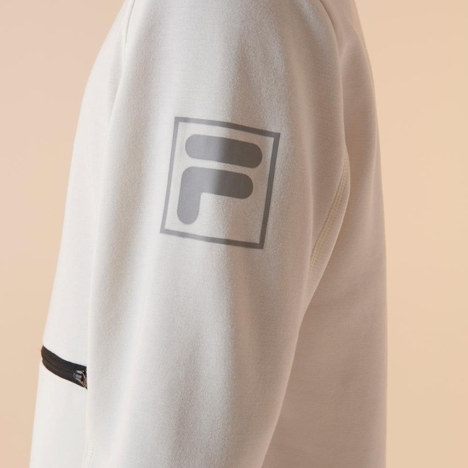Blusão masculino confeccionado em malha de poliéster com algodão ecológico. A modelagem comfort traz gola, punhos e barra em ribana, além de recortes estratégicos para melhor ajuste. Possui bolso frontal com zíper e puxador com trava. O design mescla texturas, com corpo e parte externa das mangas em tecido texturizado. Maxi logo F-Box refletivo na manga esquerda e assinatura F-Box High Performance & High Style refletiva nas costas.ref: M17LRQ