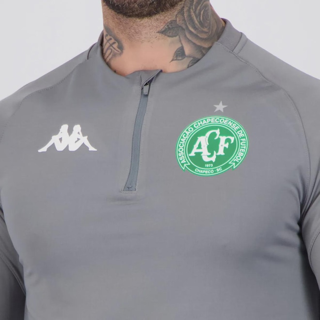 Composição: 100% Poliéster Clube: Chapecoense Cor predominante: Cinza Indicado para: Treino Gola: Alta, com zíper Gênero: Masculino Escudo: Estampado Origem: Nacional Manga: Longa Forro: Não Dimensões aproximadas (A x L): P: 73 x 51 cm M: 75 x 53 cm G: 77 x 55 cm GG: 79 x 57 cm EG: 81 x 59 cm
