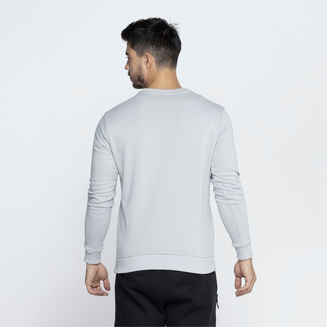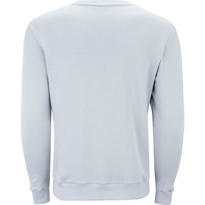 Conta com gola careca com tira interna, suas mangas são longas e sua barra e punhos são elásticos e canelados.