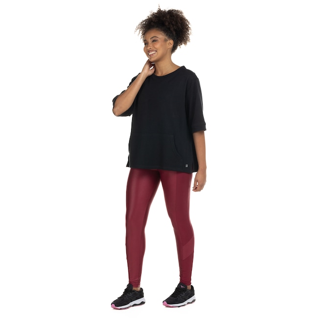 Já o bolso “canguru” permite guardar pequenos itens para mais praticidade durante as atividades.