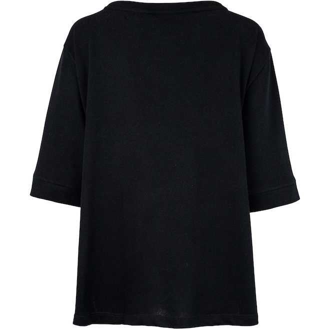 Sem forro, conta com tira em tecido na parte interna da gola que ajuda a diminuir o desconforto do atrito da costura.