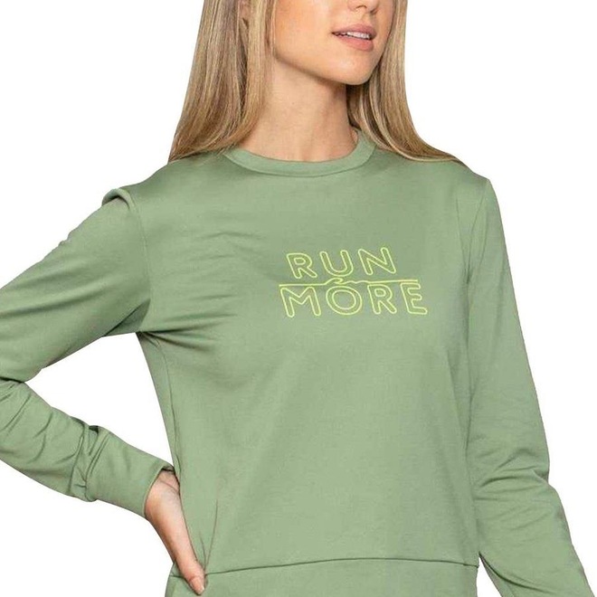 O Blusão Run More Thermo Plus Feminino apresenta gola redonda.