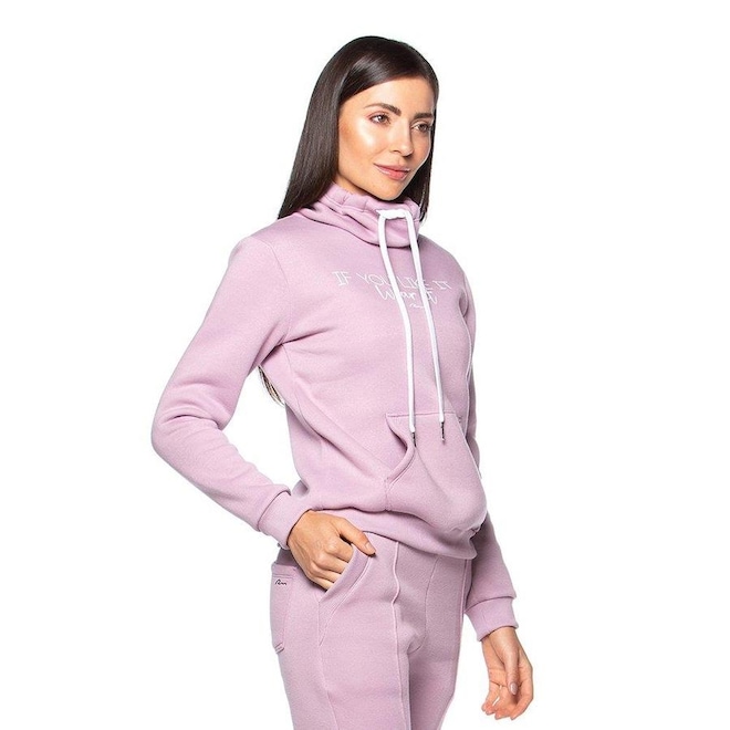 O Blusão Run More Wear - Feminino é confeccionado 53% em poliester e 47% em algodão, apresenta acabamentos com ribana.Possui gola alta com amarração e serigrafia na parte frontal escrita "If you like it, wear it" (tradução: Se você gosta, vista).