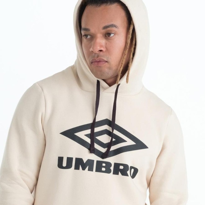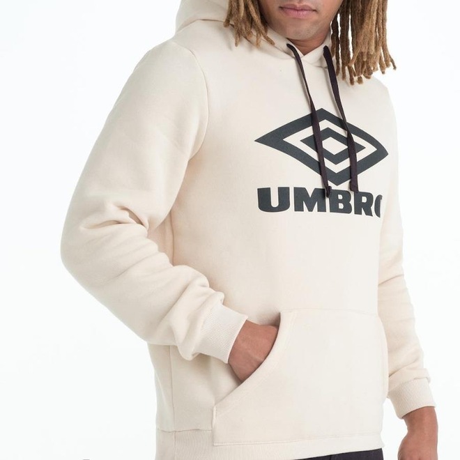 Blusão com capuz unissex confeccionado em moletom de algodão e poliéster com felpa interna. Modelagem regular com manga longa. Possui capuz com ilhós bordado e cordão ajustável, bolso canguru frontal com costura rebatida dupla, punhos e barra em ribana, cobre gola com tape personalizado e maxi logo Umbro em silk centralizado na parte frontal superior.