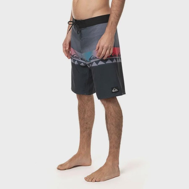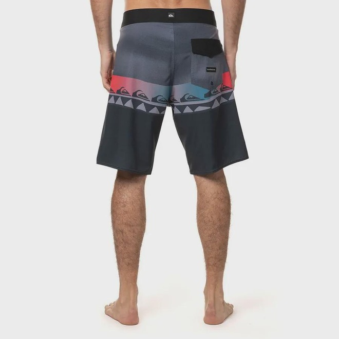 Bolso chapado traseiro com aplicação de etiqueta e lapela com velcro.