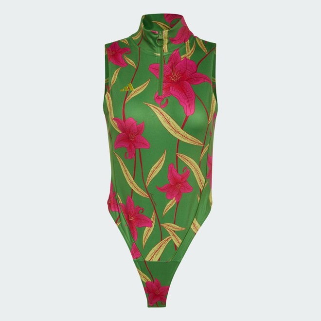 O BODY adidas x FARM funde a energia floral vibrante da marca brasileira com a herança do vestuário esportivo da adidas para um visual que combina alta costura com desempenho. Com sua modelagem folgada e gola alta com fecho de botões, esta peça equilibra estilo e conforto. O BODY adidas x FARM proporciona uma sensação de pele macia e suave graças ao seu tecido interlock, que lida com o desafio de treinar com facilidade. A peça é assinada com o icônico logotipo Três Barras da adidas para uma declaração confiante do seu estilo, combinando o espírito dinâmico da adidas x FARM com o inconfundível DNA Originals