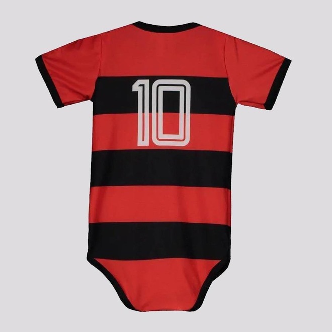 De modelagem confortável para os bebês demonstrarem desde cedo a paixão rubro-negro carioca, o Body do Flamengo Listrado é o presente perfeito!Confeccionado com a leveza e ótimo caimento do poliéster, o Body do Flamengo Baby possui gola careca, mangas curtas para liberdade dos movimentos e fechamento por botões de pressão na parte inferior que são muito práticos na hora de trocar a fralda, não necessitando retirar toda a roupinha. Um diferencial desse Body Baby é a Proteção UPF 50+ contra as radiações UVA e UVB nas partes cobertas, perfeito para usar nos passeios matinais e vespertinos dos bebês. Além disso, o escudo do clube carioca e o nº 10 nas costas valorizam o visual esportivo do body infantil.