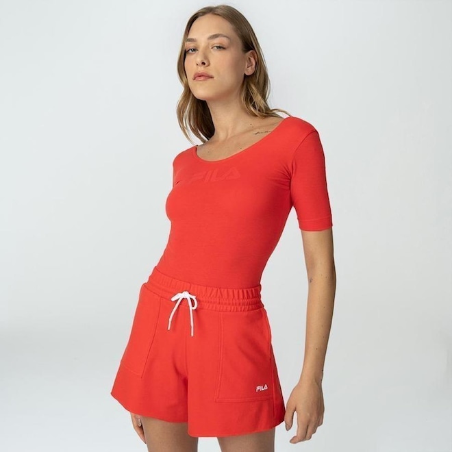 Body Fila Letter - Feminino Body feminino confeccionado em malha de algodão com elastano. Modelagem slim, mais justa no corpo, estilo collant bailarina com manga curta. Possui decote em ?U?, decote nas costas na altura da linha do sutiã, fechamento com botões de pressão no fundilho e estampa Fila Letter centralizada na parte frontal superior. ''''''''O CHILI,''''''''ref: M0ZY4N
