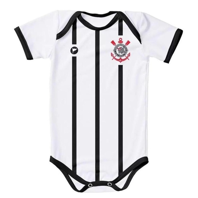 Body manga curta oficial do Corinthians , ideal para vestir o seu bebê dos pés a cabeça com as cores do Timão.