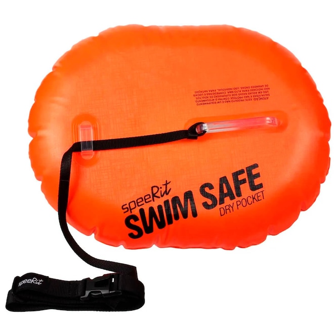 A SPEEDO Nautical Swim Safe DryPocket é a companhia perfeita para nadadores de águas abertas: é sinalizador, é boia de segurança e porta-objetos pequenos. Sua cor laranja é ideal para visualização em longa distância, e com cinto duplo ajustável, não sai da cintura, sendo super segura para nadar no mar. Fácil de inflar e desinflar, é compacta, para não ter volume extra na bolsa! E no compartimento, você ainda pode guardar chaves, documentos, óculos e etc. Item indispensável!