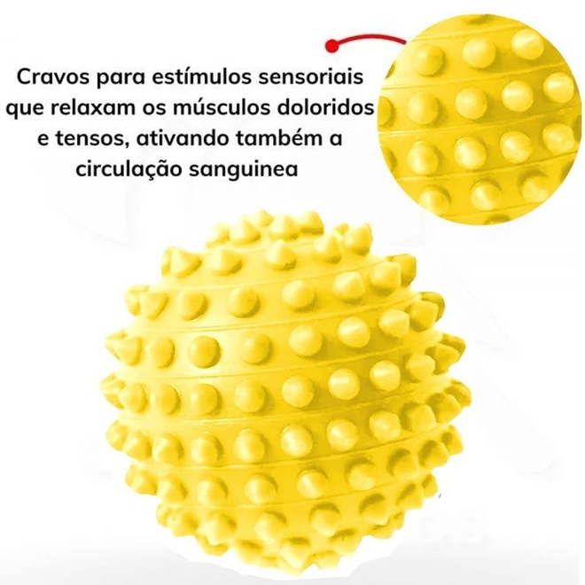 Contém cravos emborrachados espalhados na superfície, promove melhora do fluxo sanguíneo, proporciona efeito sensitivo e relaxamento muscular