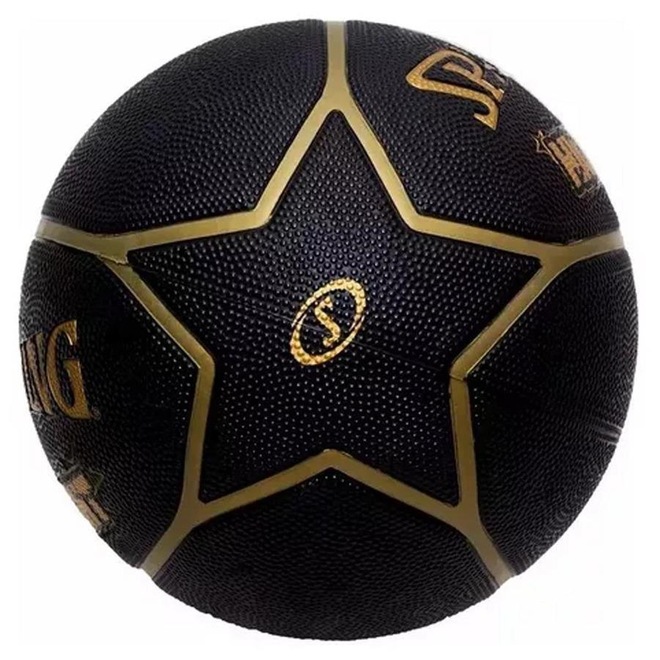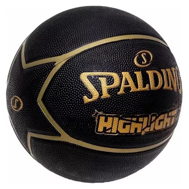 A Bola de Basquete Spalding Highlight Star é estilo e performance ao mesmo tempo, uma verdadeira estrela em quadra! A Linha Highlight da Spalding conta com conceito único de canaletas em forma de estrela. Bola no tamanho 7 oficial. A bola conta com revestimento em borracha premium com excelente grip (aderência às mãos). A tecnologia de pontos elevados na borracha proporciona superfície aderente que melhora o manuseio e jogabilidade. Produto ideal para basquete outdoor em ruas, parques e quadras de cimento em geral. CARACTERÍSTICAS: - Design de estrela exclusivo - Estampa: Personalizada - Material de revestimento versátil outdoor em borracha - Miolo removível e lubrificado - Seixos elevados em toda a bola para melhor aderência - Excelentes toques e pegada ESPECIFICAÇÕES: - Marca: Spalding - Tamanho: Oficial 7 - Composição: 90% Borracha, 3% butil, 7% nylon - Circunferência: 75cm - Câmara de ar 100% borracha butílica - Peso: 650g - Cor: Preto com dourado - Origem: Importada - Garantia do Fabricante: Contra Defeito de Fabricaçãoref: M0Z6WR
