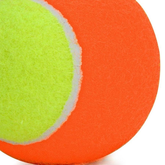 Feltro: 60% Fibras naturais e 40% Fibras sintéticas - Detalhes: Pacote contém 06 bolas de beach tennis, amarela e laranja, marca em evidencia, 50% mais lenta que as bolas tradicionais, indicada para praticar de Beach Tennis - Origem: Nacional.