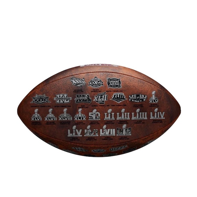 Detalhes: Cada ponto marcado em todos os Super Bowls desde o início oficial dos jogos foi com uma bola de futebol americano Wilson. Apresentando o clássico couro Composite Leather com um visual vintage, essa bola presta homenagem aos Super Bowls do passado.Composição: Couro composto, Câmara de borracha butílica para retenção de ar estendida para reduzir a necessidade de reinflar