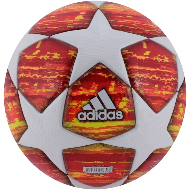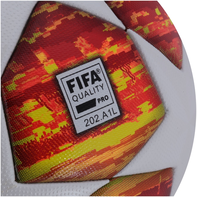 Inspirada nos gramados da Final em Madrid 2019, essa Bola de Futebol de Campo adidas possui estampa valorizada pelas estrelas da prestigiada UEFA Champions League em toda a estrutura de PU (poliuretano) sem costura, com liga térmica que proporciona baixa absorção de água para um voo mais preciso e direto. Já a câmera de butil da Bola adidas UEFA Final Madrid 2019 oferece máxima retenção de ar para leveza. Além disso, o Selo FIFA confere a qualidade da bola de futebol de campo com relação ao peso, formato e retenção de tamanho. Não perca a chance e sinta nos treinos a mesma emoção e garra das estrelas do futebol europeu nos campos. Adquira a sua!