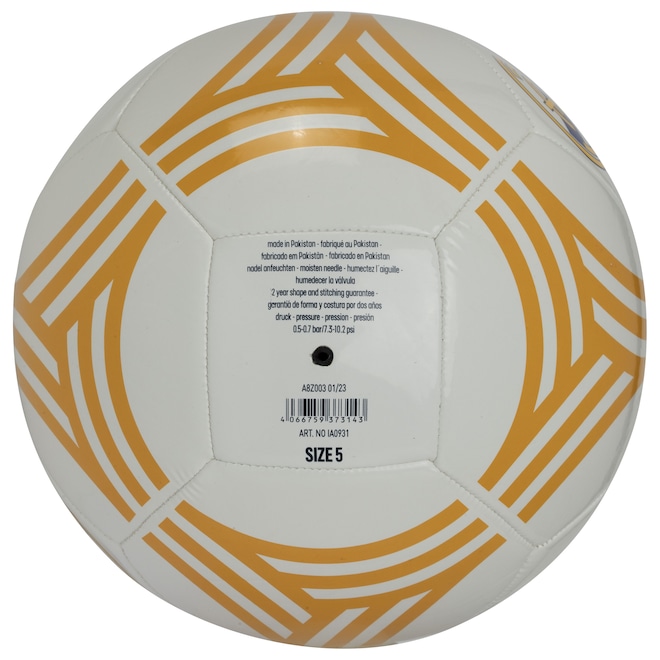 Com o emblema e as cores icônicas do Real Madrid, esta bola é uma representação autêntica do orgulho e da história do clube. Mostre seu apoio a cada toque.