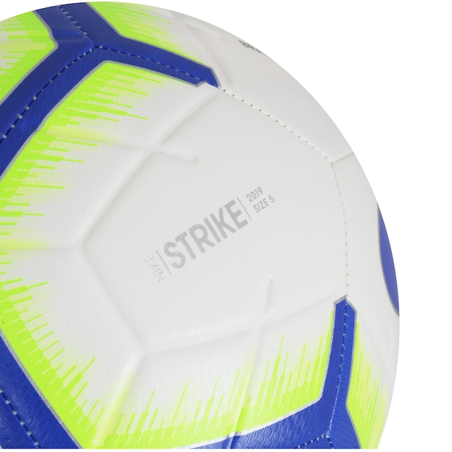 Criada para dribles memoráveis dentro dos gramados, essa Bola de Futebol Nike foi confeccionada em materiais altamente resistentes, que garantem precisão e leveza em todos os chutes. Com escudo da CBF (Confederação Brasileira de Futebol) em destaque, a Bola Strike tem tecnologia Aerowtrac, que proporciona controle absoluto e voo verdadeiro em todos os lances. A estampa personalizada oferece ótima visibilidade em todas as partidas de futebol. Aproveite o preço para comprar hoje mesmo a Bola da Seleção Brasileira 2019!