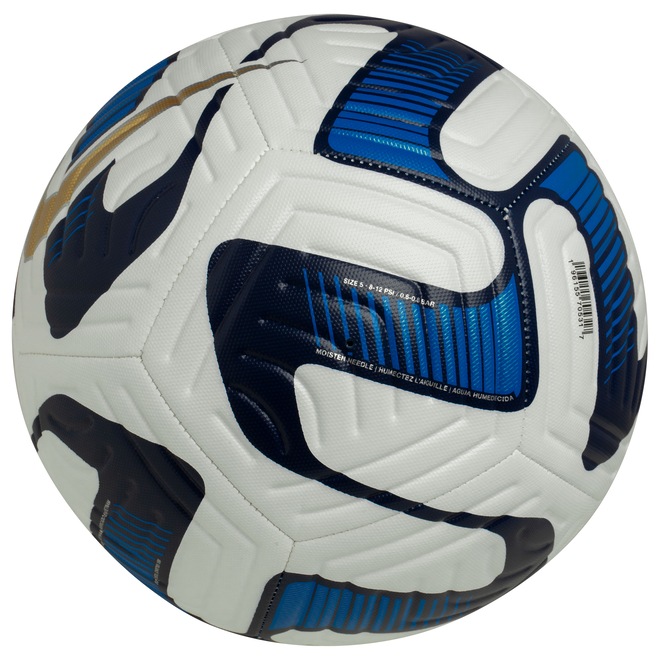 A bola Nike de futebol de campo é feita com materiais excelentes, tem 68 cm de circunferência e pressão de 8 - 12 psi e 0.6 - 0.8 bar.
