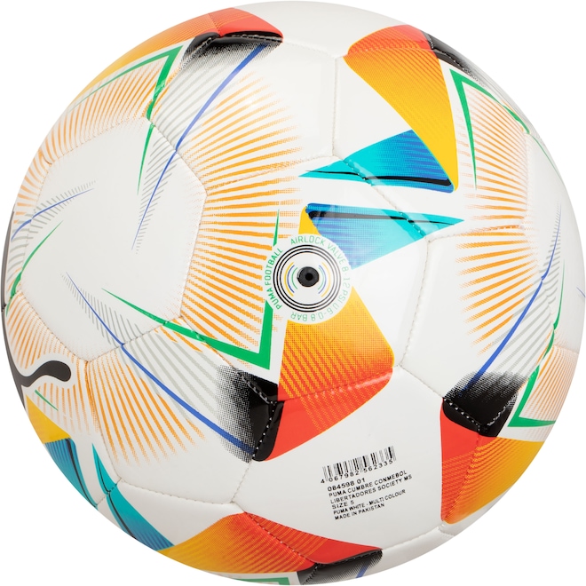 A Bola de Futebol Society Puma Cumbre Conmebol Libertadores combina design exclusivo e alta performance. Produzida com material de qualidade, garante durabilidade e excelente controle nos passes e chutes. Com pressão ideal entre 0.6-0.8 bar (8-12 psi), oferece consistência e precisão em cada jogada. A estampa personalizada inspira seu jogo com o espírito da Libertadores, trazendo o clima dos grandes torneios para o campo. Ideal para partidas intensas, ela é a escolha certa para quem não abre mão de qualidade e estilo!