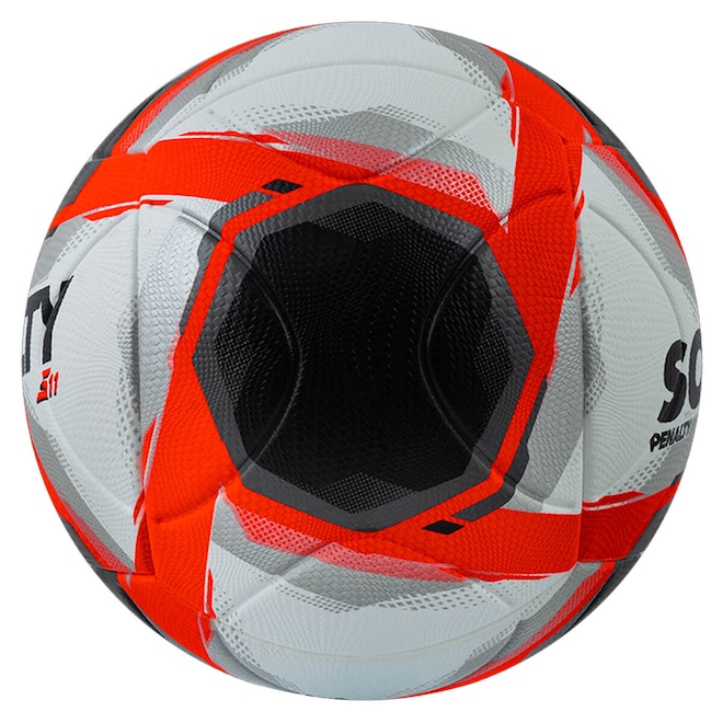 -A Bola Society Penalty S11 R2 possui construção sem costuras através da tecnologia Ultra Fusion, que garante menor absorção de água, maior durabilidade e esfericidade perfeita, resultando em chutes mais precisos e consistentes.