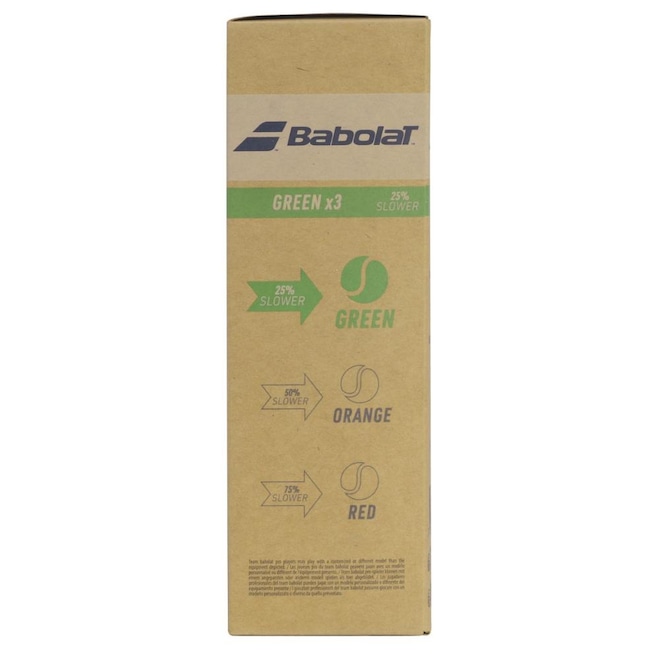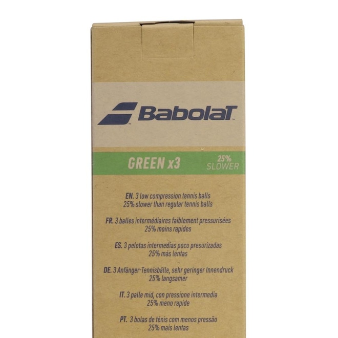 A Babolat está sempre preocupada em inovar e desenvolver produtos da mais alta qualidade e hoje está presente em mais de 100 países. Com a credibilidade de uma das mais importantes marcas direcionadas a produtos de tênis do mundo, apresenta a Bola De Tênis Babolat Iniciação Green Stage com 03 Bolas, ideal aos jovens tenistas, é aprovada pela Federação Internaconal de Tennis (ITF), facilita o aprendizado e concede os melhores resultados por ser 25% mais lenta e pode ser usada também para a prática de Beach Tennis.
