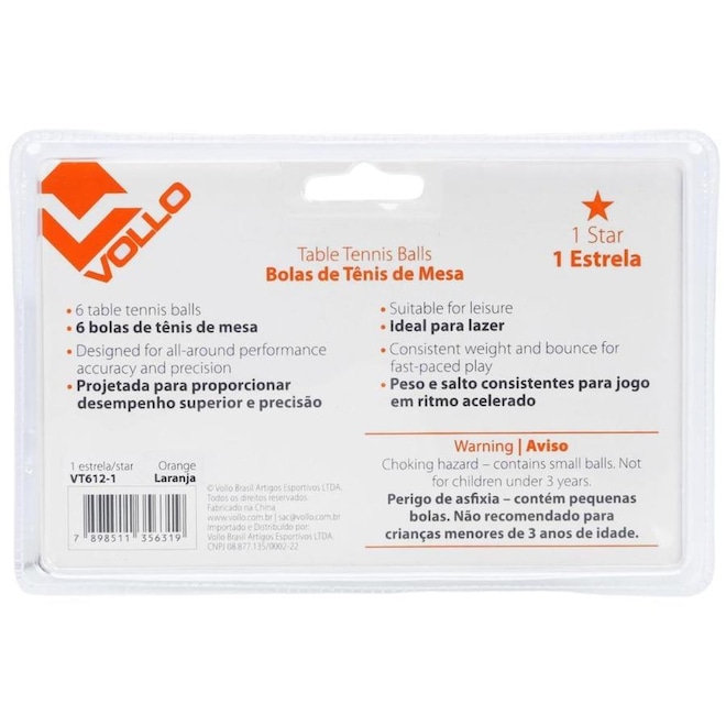 A marca Vollo é internacionalmente conhecida pela sua vasta variedades de produtos e equipamentos para diversas modalidades esportivas. Você pode conferir a qualidade através da Bola de Tênis de Mesa Vollo 1 Estrelas com 06 Bolas Laranja que foi desenvolvida para treinamentos e competições nacionais.