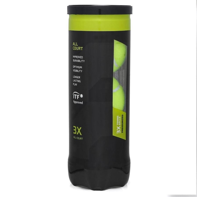 - Detalhamento: Bola ITF approved, Pack com 03 tubos contendo bolas pressurizadas, ideal para todos os tipos de quadra, alta durabilidade e visibilidade melhorada;