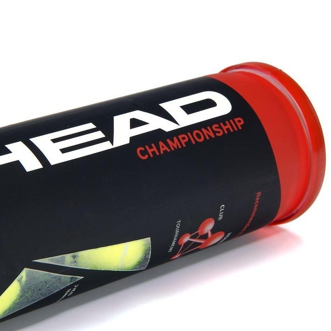 Descrição da Bola de Tênis Head Championship Tubo com 3 Bolas Marca destaque em produção de artigos para Tênis, a Head tem produtos que são desenvolvidos com alta tecnologia para proporcionar total desempenho.Os produtos da marca Head são utilizados por