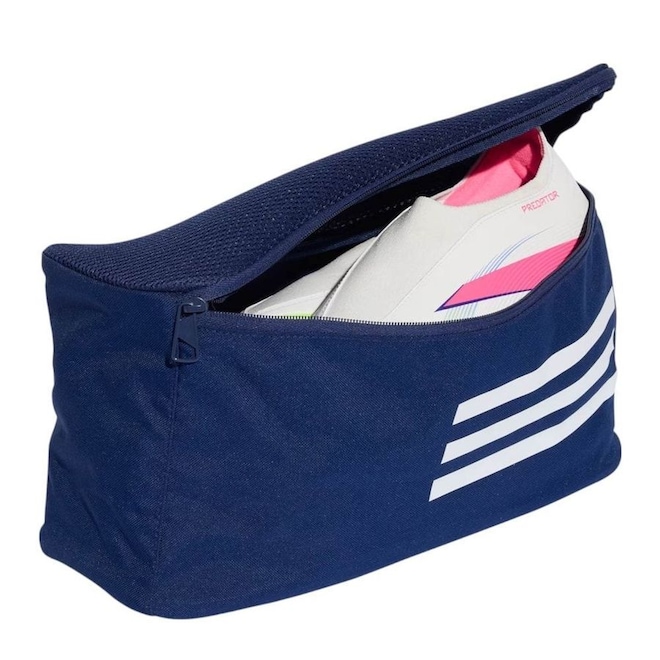 Ideal para proteger e transportar seus calçados com praticidade, a Bolsa Tênis Treino Essentials da adidas é feita em poliéster reciclado e conta com painel lateral em malha elástica, que favorece a ventilação. Com compartimento principal espaçoso e zíper seguro, é perfeita para levar à academia ou aos treinos. A alça de mão facilita o transporte, enquanto o visual esportivo reforça o estilo da marca.