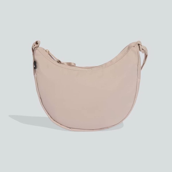 Dimensões aproximadas (A x L): 16 cm x 26 cm Alças: Uma para os ombros ou cintura Compartimento: Um principal amplo Bolsos: Não possui Composição: 100% Poliéster Abertura/fechamento: Zíper Cor predominante: Bege Peso aproximado: 110 g Indicado para: Casual Origem: Importada Logo: Estampada Tamanho único