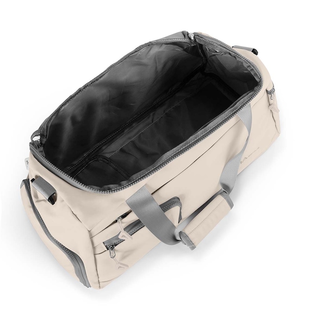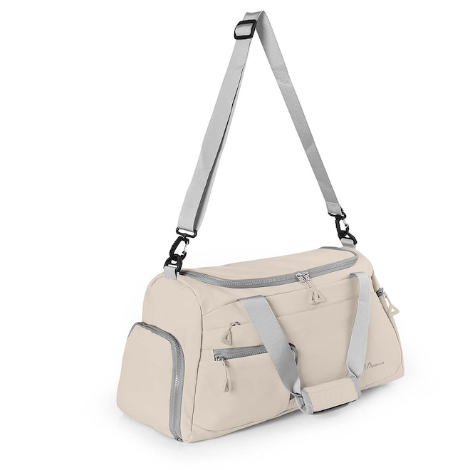 Ela possui o compartimento principal bem grande, com um bolso interno. Um outro compartimento para calçados, sendo isolado, não misturando com os itens de dentro da bolsa. Um bolso lateral ideal para itens que você precisa utilizar com mais frequência. Um bolso na frente bem grande. E outro bolso na frente menor. E por último, um bolso atrás para itens menores. Muitos compartimentos e bolsos para que caiba tudo o que você precisa!