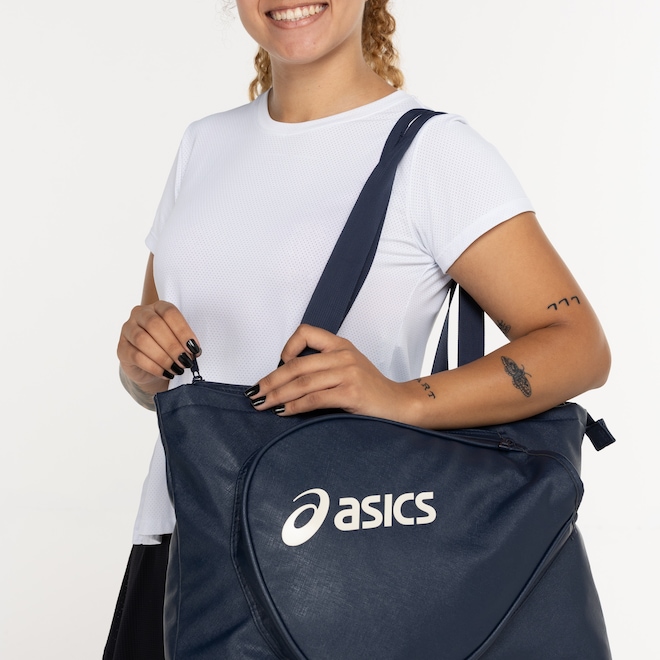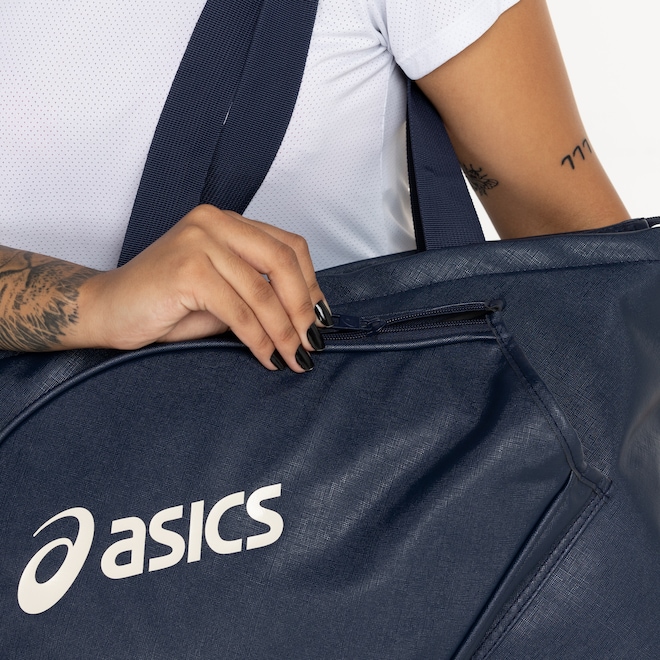 Espaçosa, resistente e estilosa para te acompanhar nas partidas do beach tennis, a Bolsa Asics com Porta Raquete possui amplo compartimento para guardar vestuários e outros itens, além de um funcional porta raquete para a proteção do acessório no transporte.