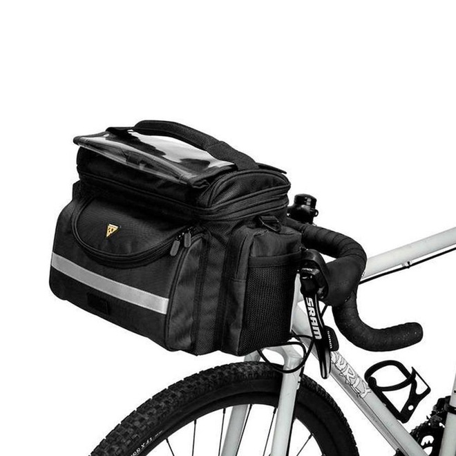 Possui fechamento com zíper e uma proteção na parte superior, para que o ciclista consiga mexer no celular no caso de o sol estar muito forte. Conta com uma faixa refletiva para aumentar a segurança do atleta nos pedais noturnos. Pode ser fixado em até três pontos, evitando que a bolsa caia durante os treinos mais intensos.