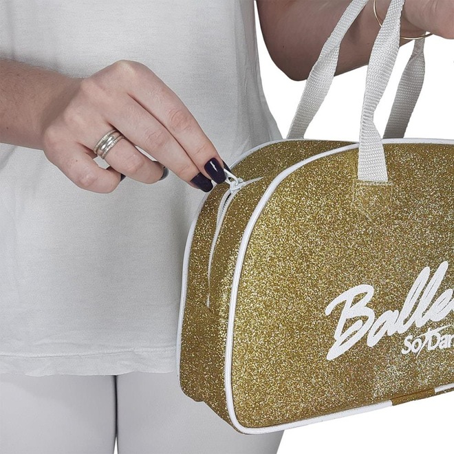 Confeccionada em poliéster com acabamento em gliter de alta qualidade, ela é ideal para você que quer carregar o que precisa para a aula de ballet com muito estilo.