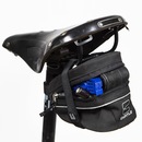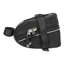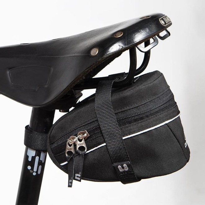 Bolsa de selim com compartimento único para transporte de pequenos objetos indispensáveis no pedal, como por exemplo, câmara de ar extra e ferramentas .Confeccionada em tecido Durven e estruturada com placa rígida de polietileno, é um produto que oferece excelente resistência à abrasão.