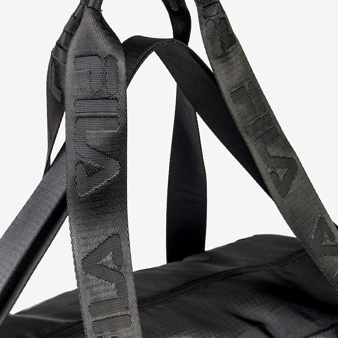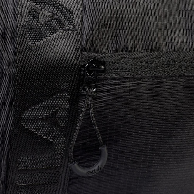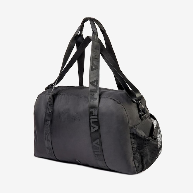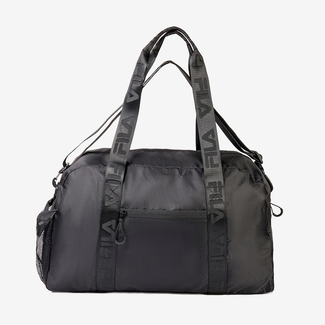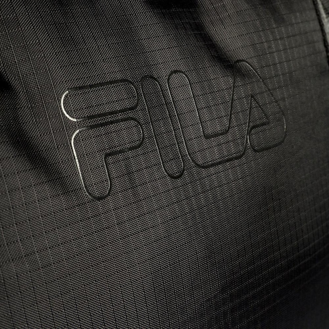 Bolsa confeccionada em ripstop de poliéster e forro personalizado. Apresenta compartimento principal com bolso interno, fechamento em zíper e puxador duplo. Possui FILA Outline estampado e ilhós respirável no painel frontal, bolso embutido no painel traseiro e um bolso lateral em mesh com cordão ajustável. Contém base com elástico, alças de mão FILA em Jacquard e alça de ombro removível com fivela de ajuste. Dimensões: 50 cm X 30 cm X 21 cm. Capacidade: 32 L.