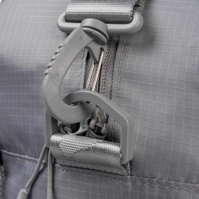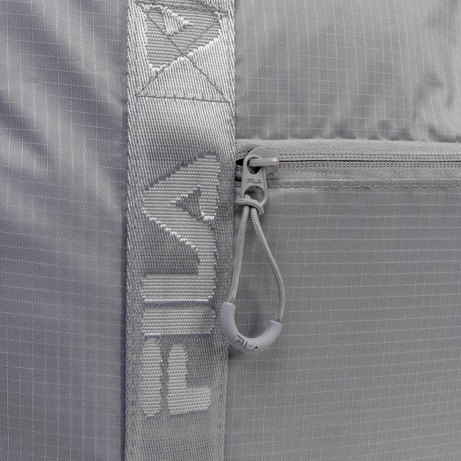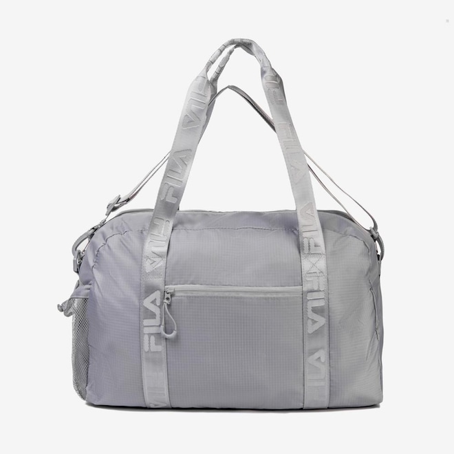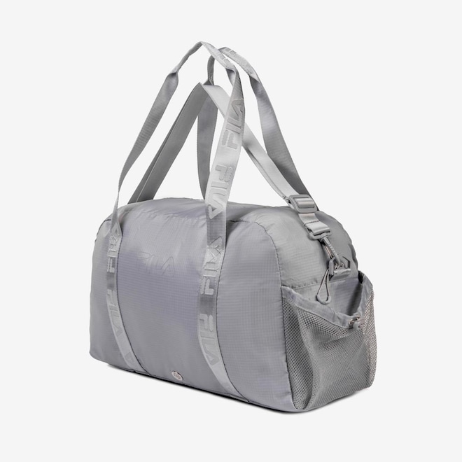 Bolsa confeccionada em ripstop de poliéster e forro personalizado. Apresenta compartimento principal com bolso interno, fechamento em zíper e puxador duplo. Possui FILA Outline estampado e ilhós respirável no painel frontal, bolso embutido no painel traseiro e um bolso lateral em mesh com cordão ajustável. Contém base com elástico, alças de mão FILA em Jacquard e alça de ombro removível com fivela de ajuste. Dimensões: 50 cm X 30 cm X 21 cm. Capacidade: 32 L.